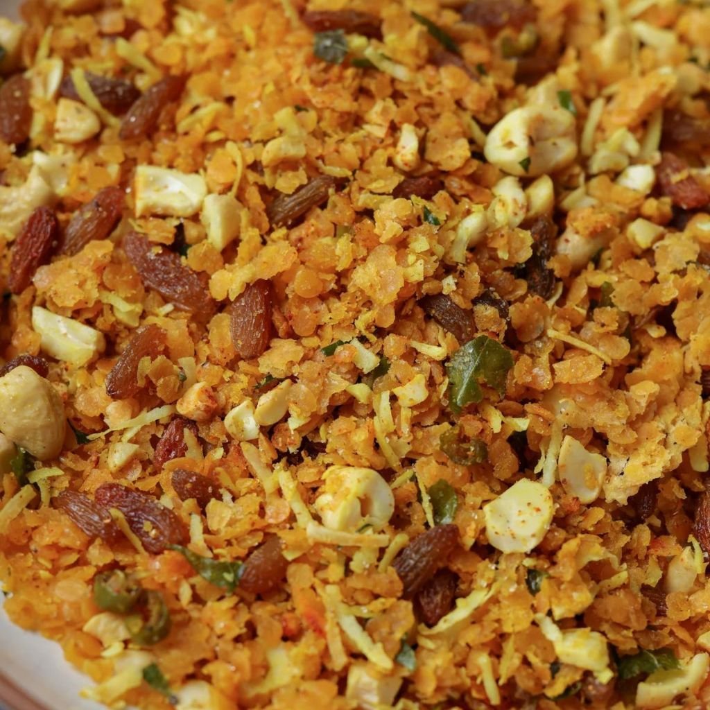 Crunchy lentil snack mix, a classic side.